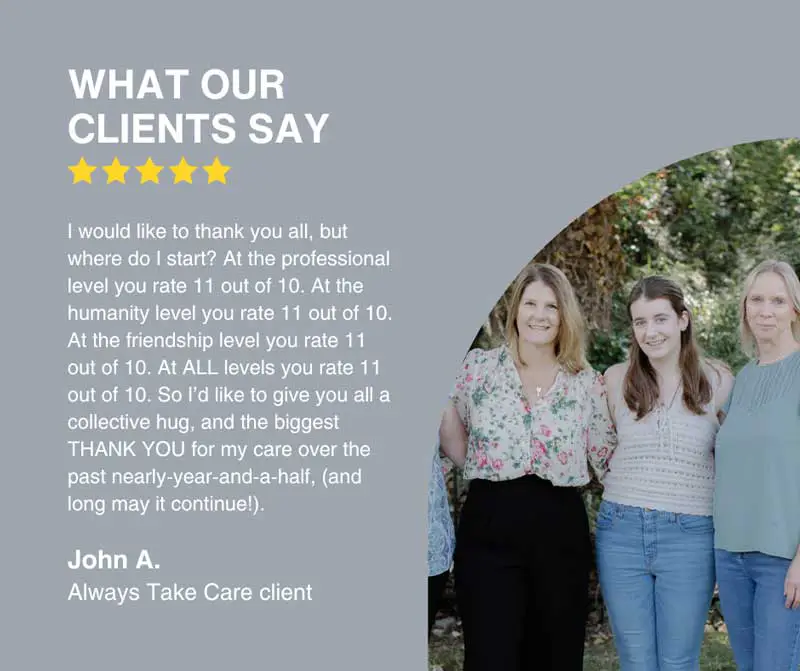 At Always Take Care, we provide experienced, compassionate caregivers who are fully employed and carefully managed by an in-home care agency that truly cares.