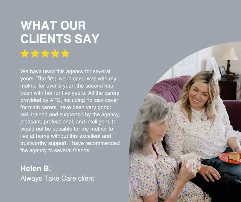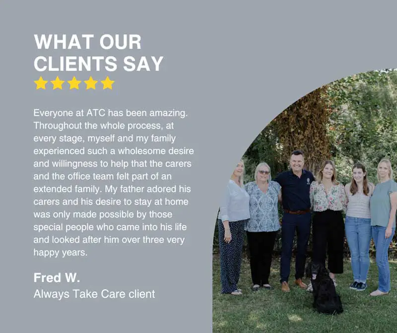 We take pride in delivering high-quality home care services, ensuring every client receives the best possible care tailored to their needs. At Always Take Care, we believe that one-to-one care in the comfort of your own home is the ideal care solution to help you maintain your independence in familiar surroundings.